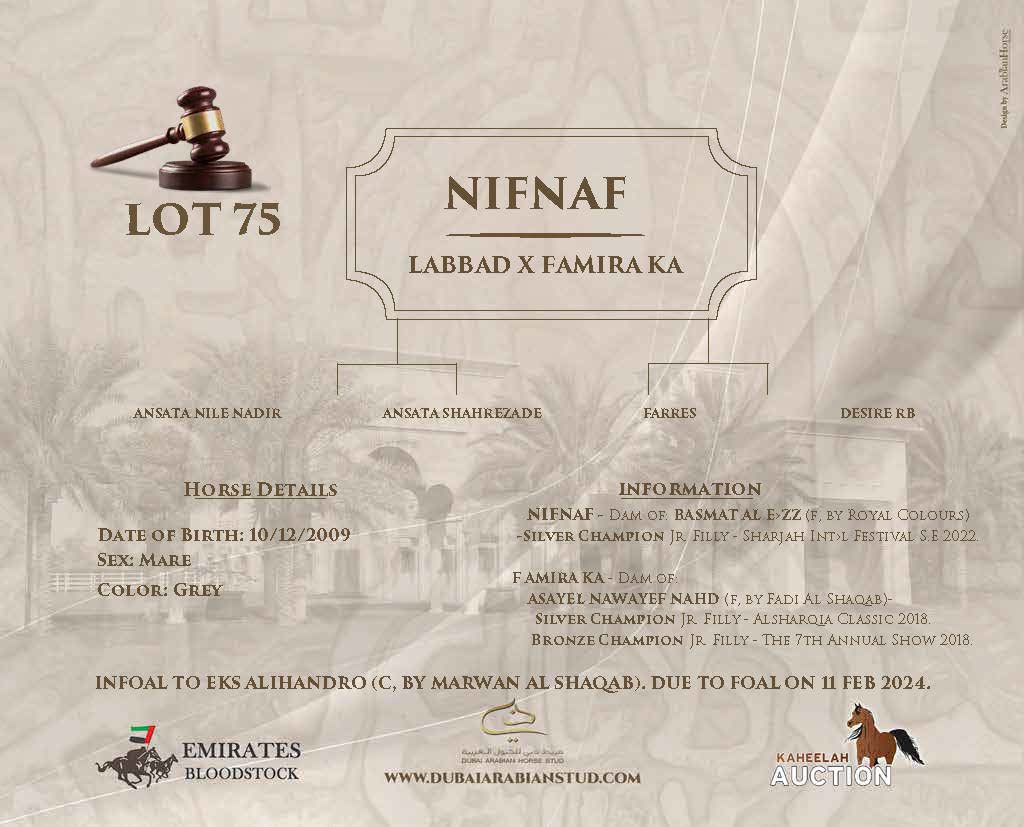 Notes:INFOAL TO EKS ALIHANDRO (C, BY MARWAN AL SHAQAB). DUE TO FOAL ON 11 FEB 2024.