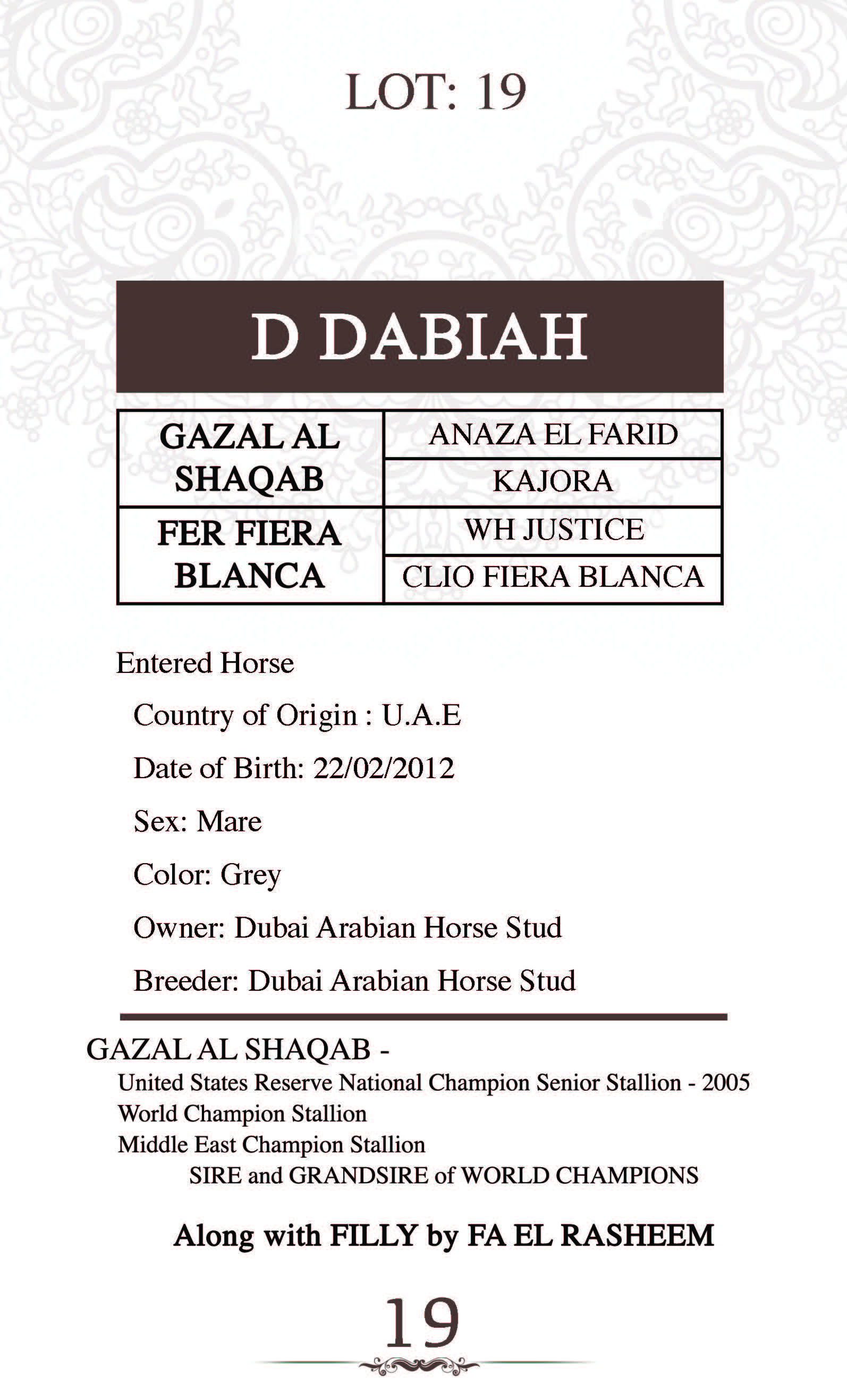 Sire: FA EL RASHEEM