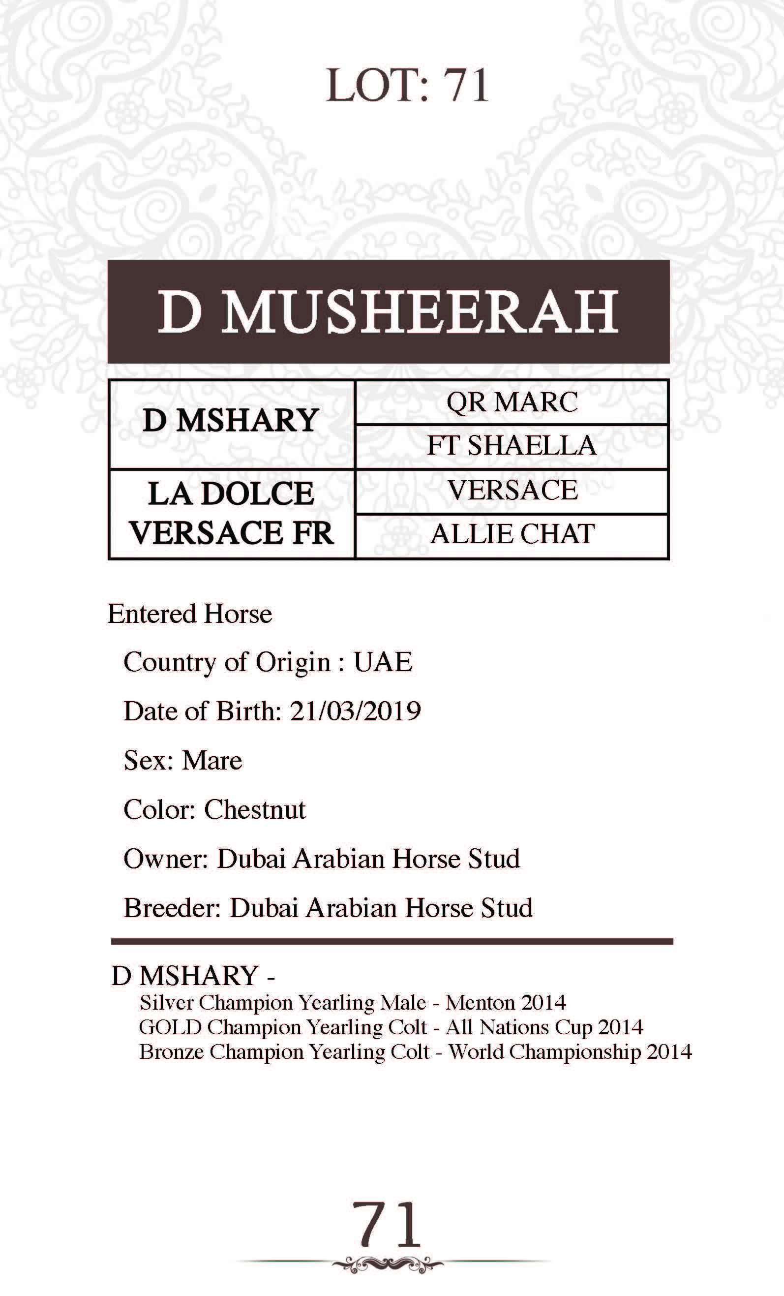 Sire: D MSHARY
