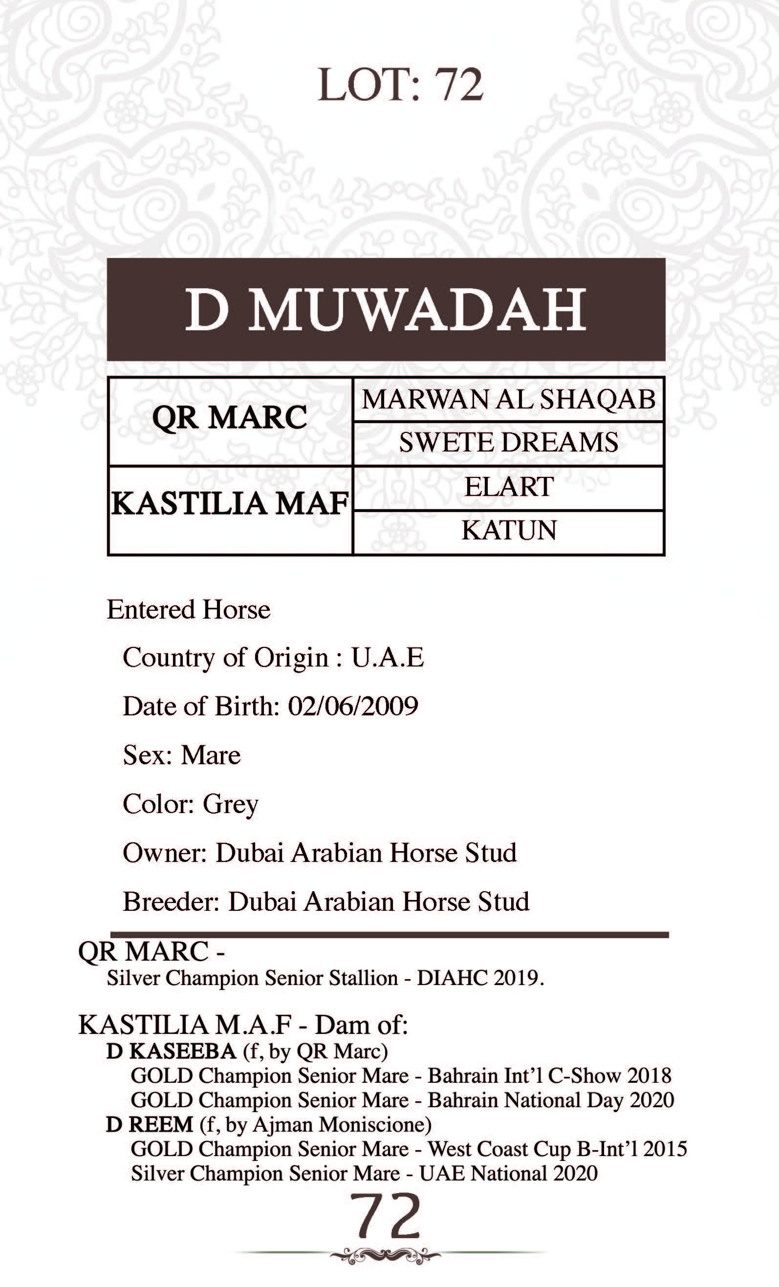 Dam's sire: SHAEL DREAM DESERT