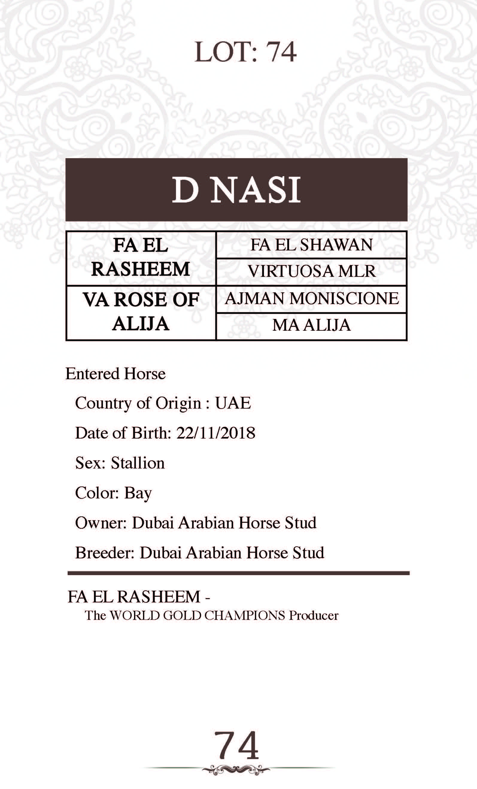 Sire: FA EL RASHEEM