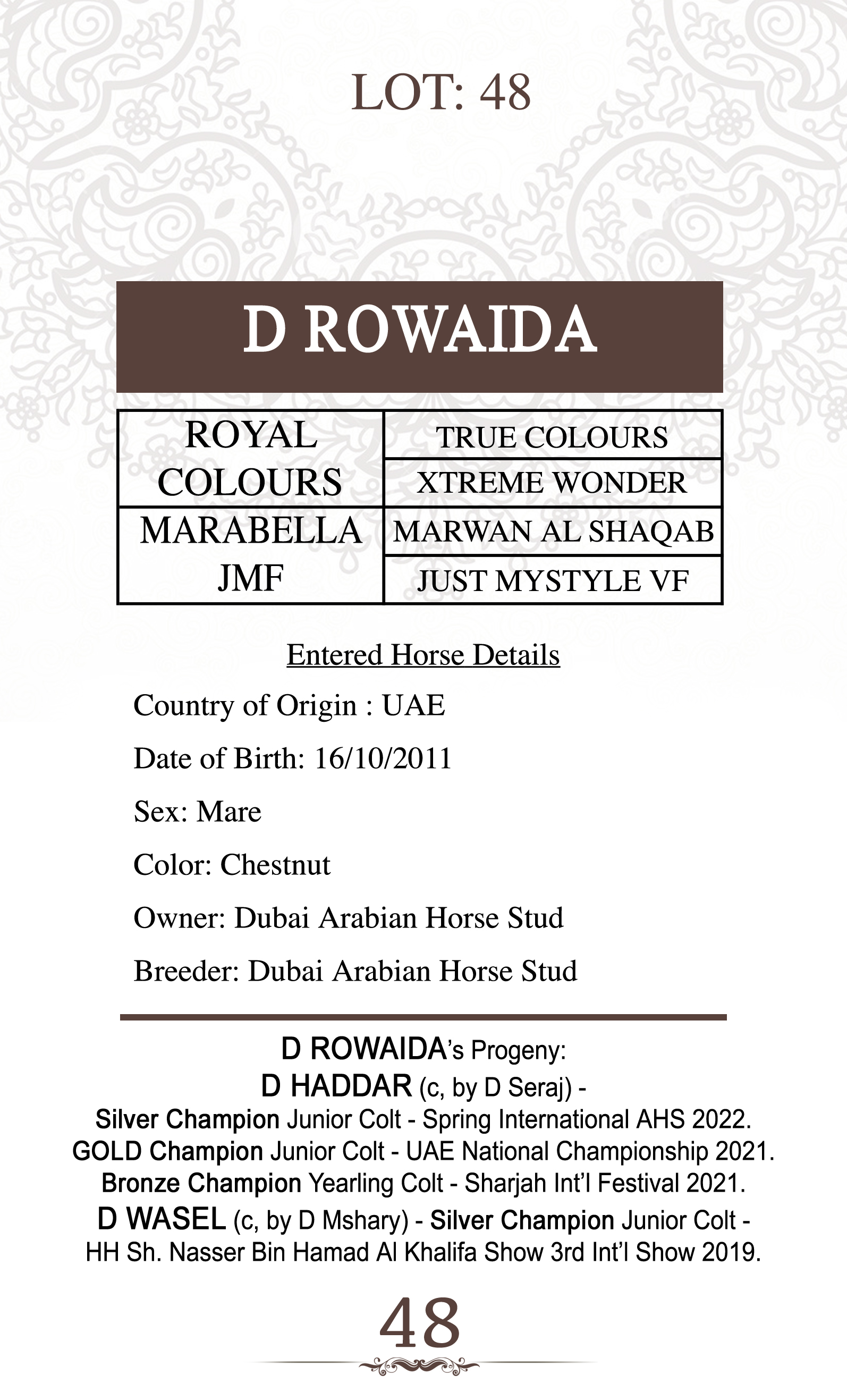 Dam's sire: MARWAN AL SHAQAB