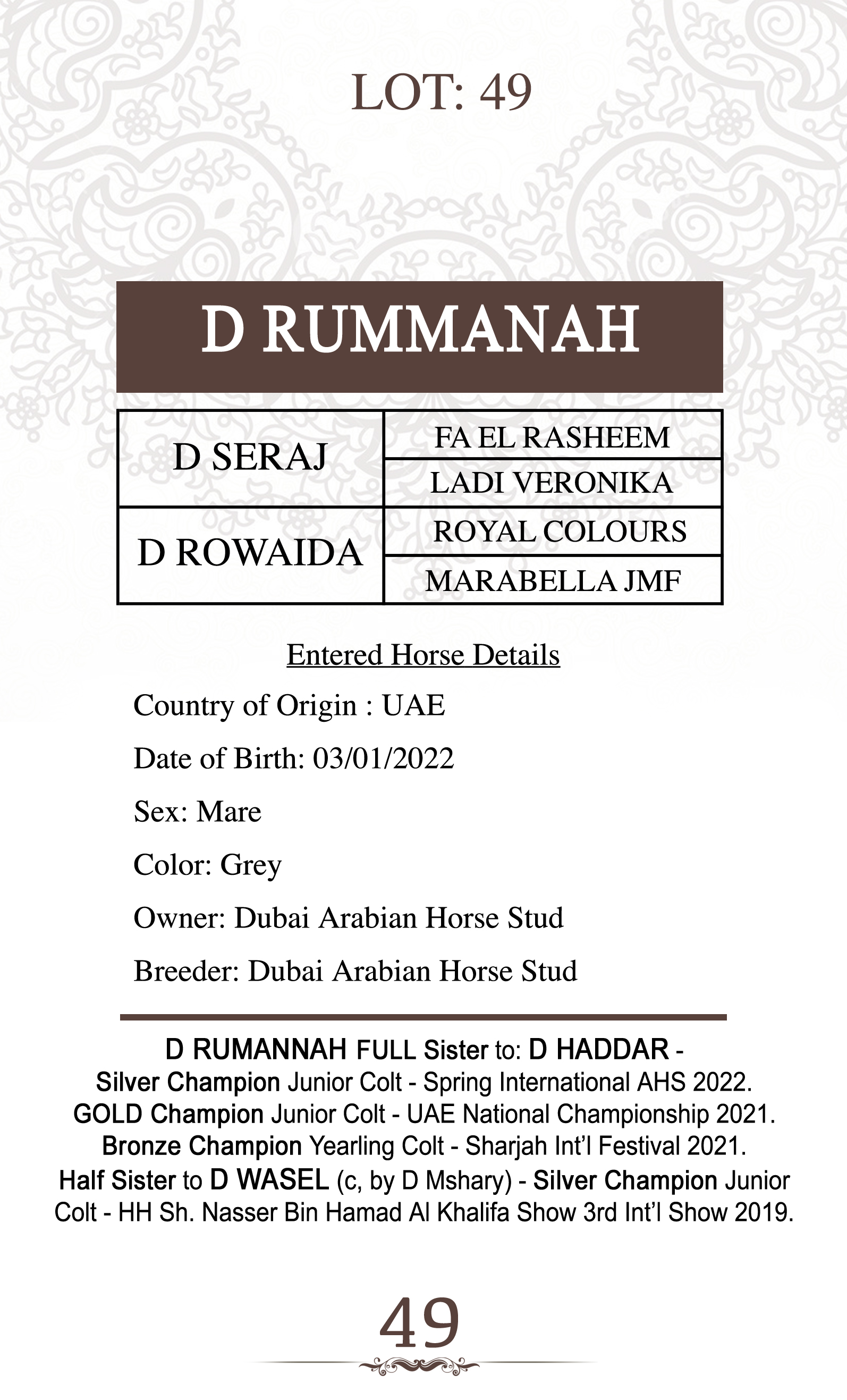 Sire: D SERAJ